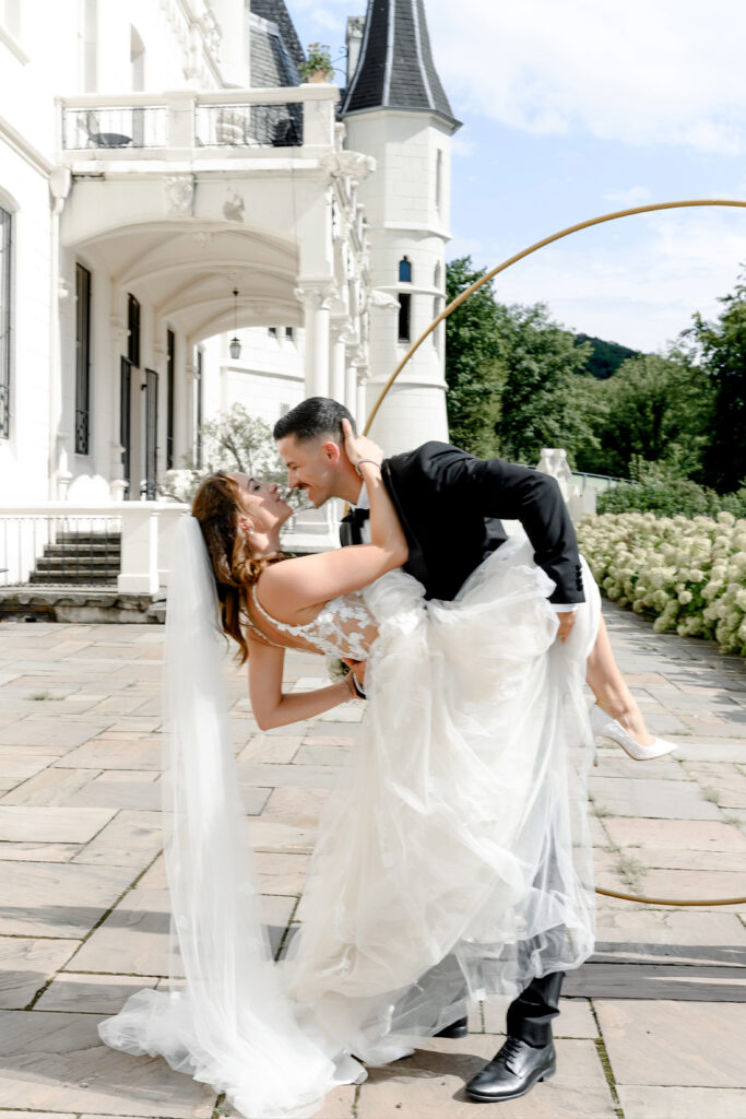 Dieser goldene, runde Traubogen besticht durch seine schlichte Eleganz und eignet sich ideal für glamouröse Hochzeitsmomente.