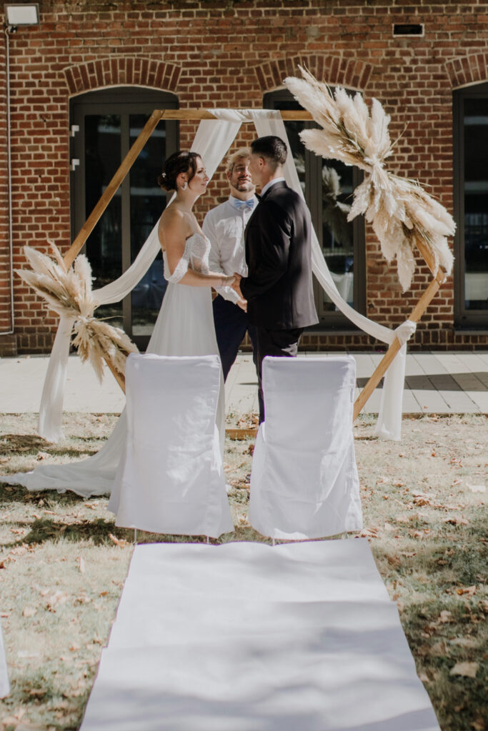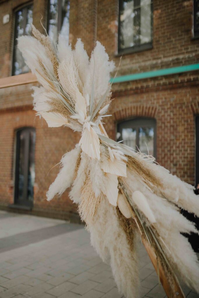 Dezente und natürliche Highlights: Die Pampasgras Gestecke bringen Boho-Chic in Eure Dekoration und lassen sich wunderbar mit den Traubögen kombinieren.